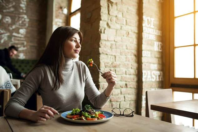 En restaurantes: Llega con hambre pero no famélico. Toma tu tiempo para revisar el menú conscientemente y elige alimentos que realmente te apetezcan.